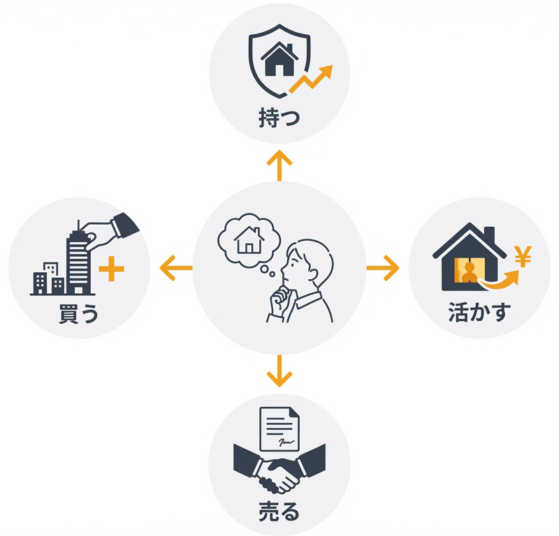 物件のこと、相続予定の土地のことなど、「どう扱えばいいか分からない」場面でご利用ください。